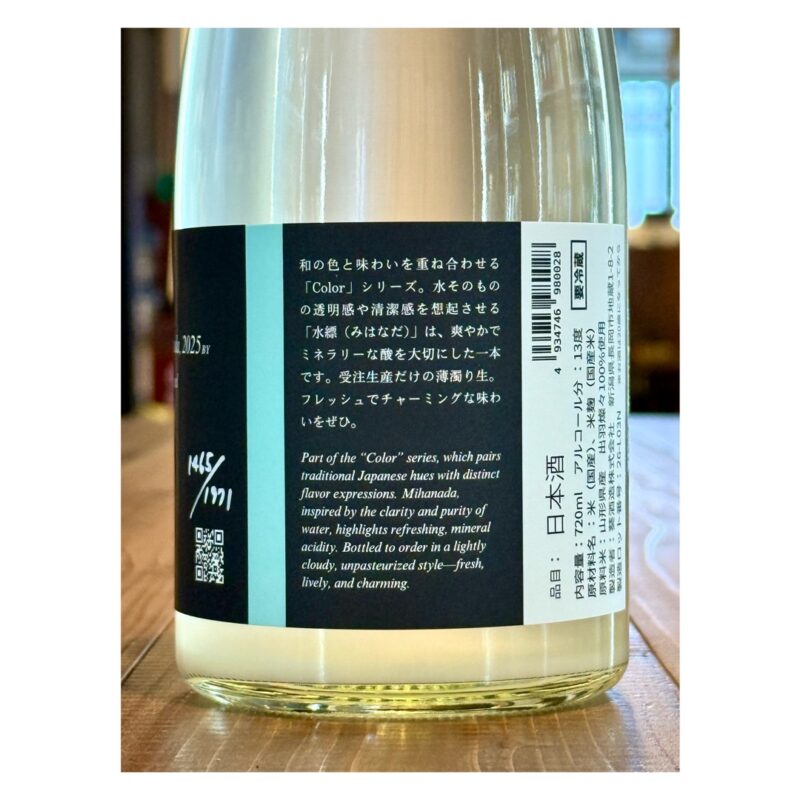 水そのものの透明感や清潔感を想起させる「水縹(みはなだ)」は、爽やかでミネラリーな酸を大切にした一本。