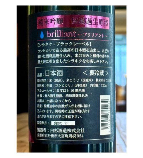 shirakiku BLACK LABEL 純米吟醸無濾過生原酒 brilliant(ブリリアント)